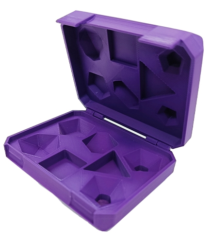 داخل آن بهگونهای طراحی شده تا تاسهای ۷تایی استاندارد D&D یا مجموعههای مشابه بهصورت مرتب و بدون ایجاد خط و خش قرار گیرند.
